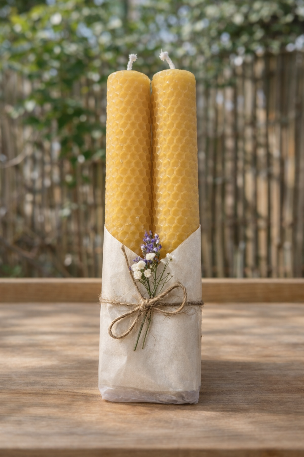 נרות ארוכים משעוות דבורים טבעית, בשילוב שמן אתרי לבנדר טהור – לחוויית בעירה נקייה, רגועה ומרפאה.